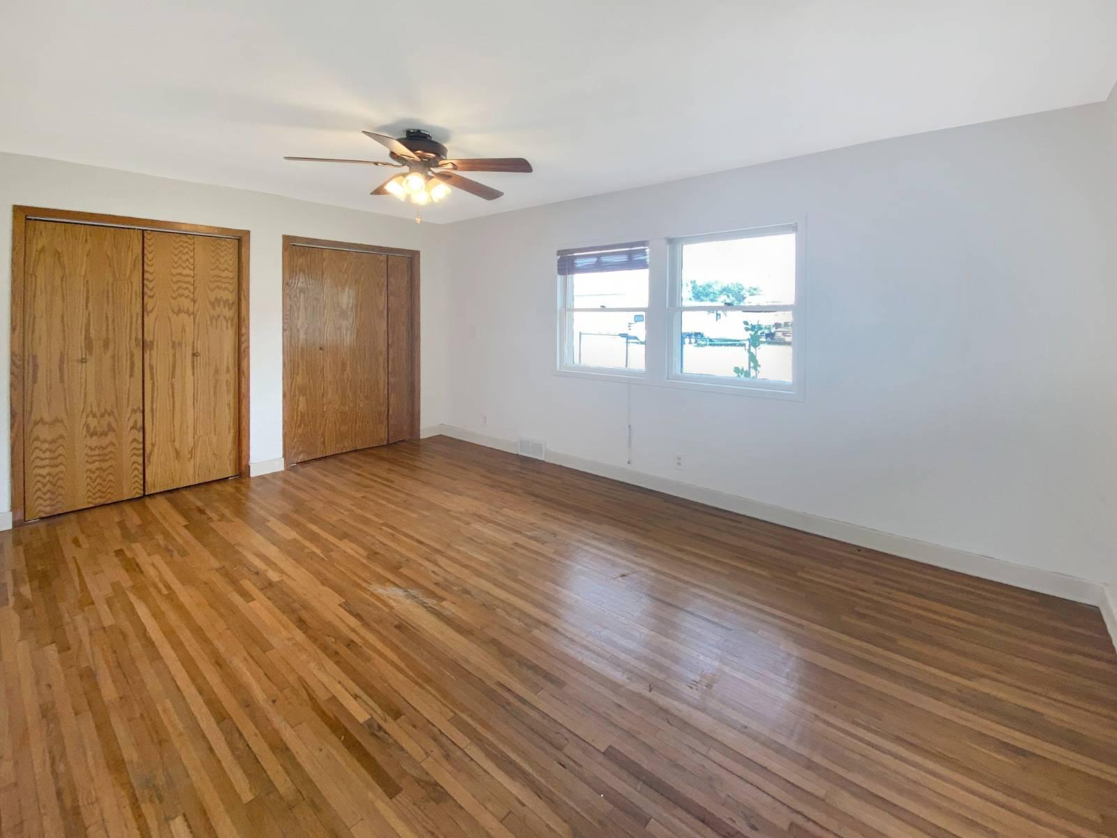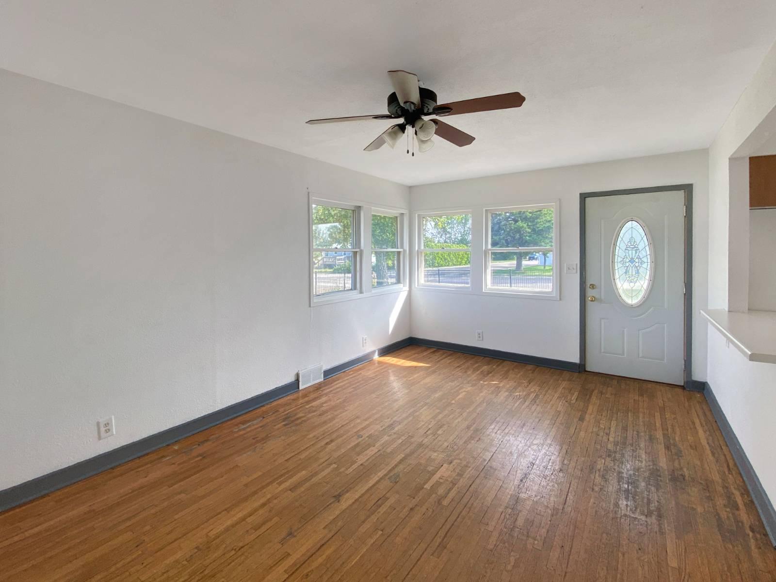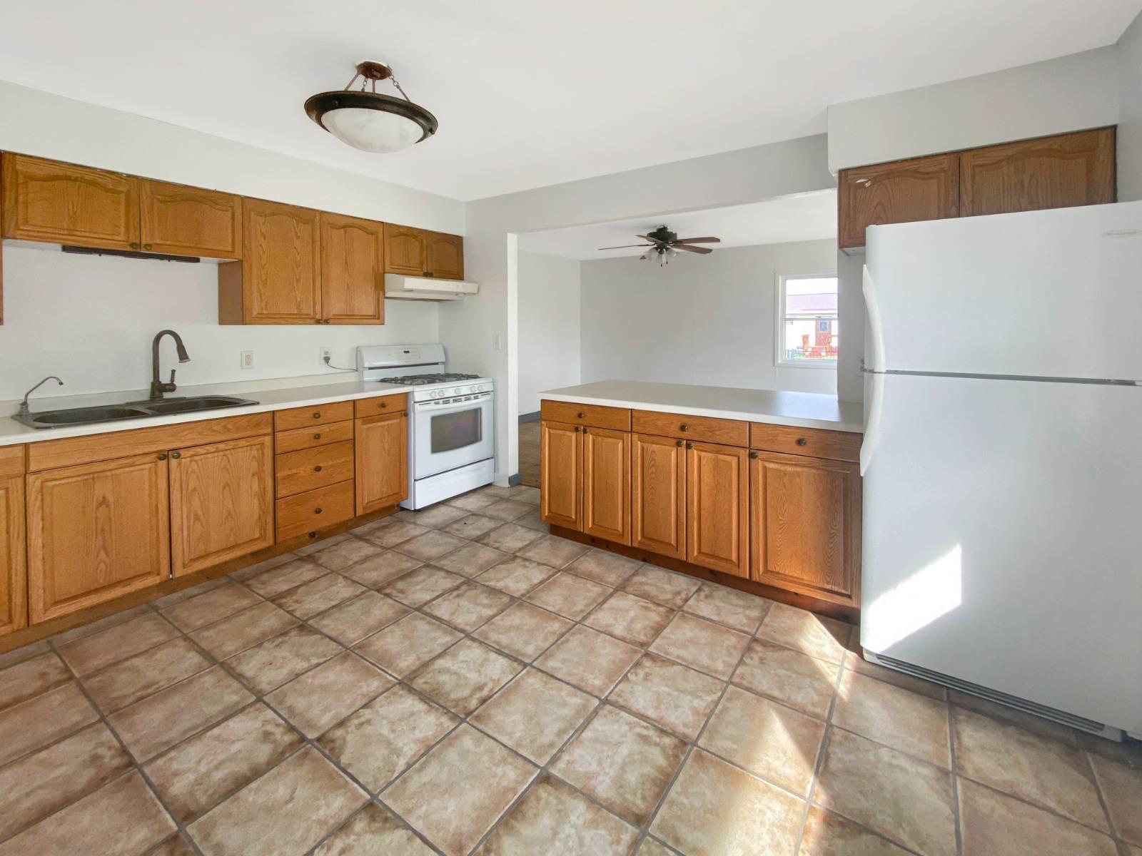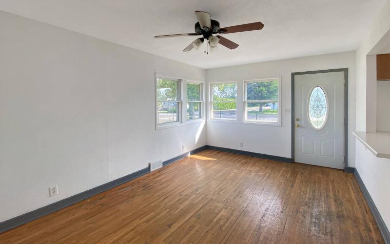 This inviting 3-bedroom, 2-bath ranch-style home offers 1,536 sq. ft. of comfortable living space on a generous 11,200 sq. ft. lot. The open kitchen includes laminate counters, range, and refrigerator, while hardwood and linoleum flooring add character throughout. This home is equipped with forced air heating, central A/C, and gas fuel for year-round comfort. Nestled on a corner lot, it blends classic character with everyday convenience.